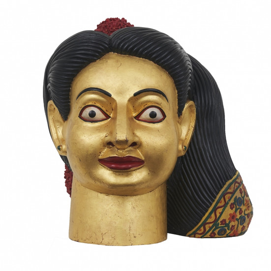 Reddy’s sculptural works—often monumental heads or robust, full-bodied forms—center around women as powerful, iconic figures. He draws heavily from classical Indian art traditions, such as those of the Gupta, Maurya, Amravathi, and Chola periods, as well as influences from West African art and the Yakshi forms of the Kushan and Mathura schools. His use of striking colors—gold, red, yellow, and blue—combined with highly expressive, confrontational gazes, evokes a sense of both reverence and challenge. Reddy believes the eyes of his sculptures should engage the viewer so directly that they leave a lasting impact.